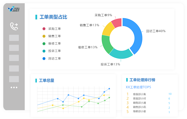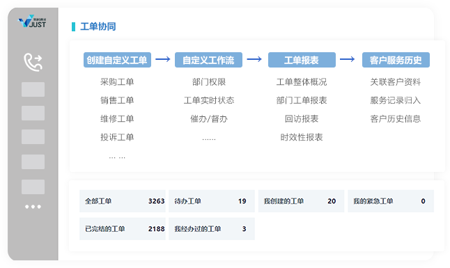坐席根據(jù)實際業(yè)務自定義工單類型,終端處理后對應反饋。